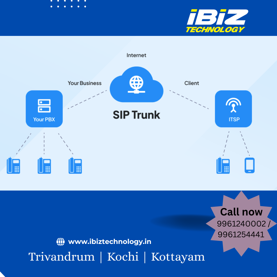 IBIZ Technology is a leading SIP Trunk solution provider in Trivandrum, Kochi, and Kottayam, delivering cost-effective and scalable voice communication solutions for businesses of all sizes. Our SIP trunking services help organizations streamline communication, reduce telephony costs, and enhance call quality with advanced VoIP technology. Contact us for ore details.